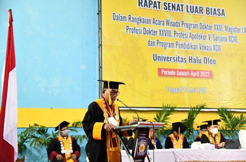 Universitas Halu Oleo (UHO) Kendari kembali menyelenggarakan wisuda Program Doktor XXXI, Magister LX, Profesi Dokter XXVIII, Profesi Apoteker V, Sarjana XCIII dan Pendidikan Vokasi XCII pada periode Januari-April 2022, di Gedung Sport Center, Rabu 26 Mei 2022.