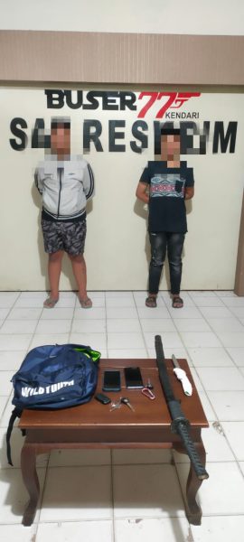 Tim Buser 77 Satuan Reskrim dan Satuan Intelkam Polresta Kendari menangkap dua pemuda yang membawa senjata tajam jenis samurai dan pisau.