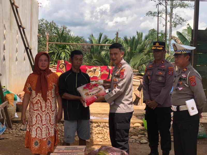 Tidak lupa Kapolres juga memberikan bantuan sembako kepada korban.