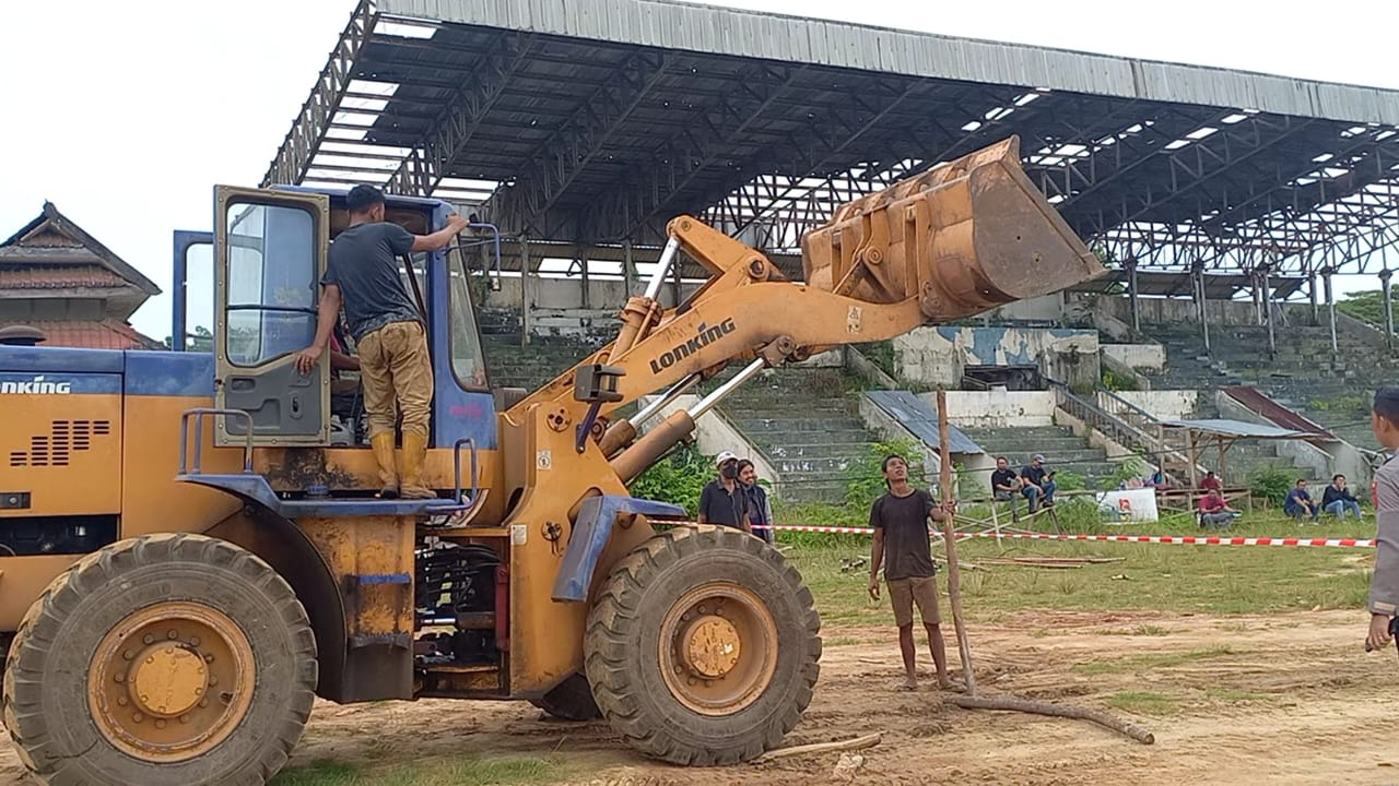 Dari pantauan Nawalamedia.id di lokasi eksekusi satu unit alat berat jenis buldozer terlihat dikerahkan untuk melakukan pembersihan dan pembongkaran sebagian bangunan Stadion Lakidende.