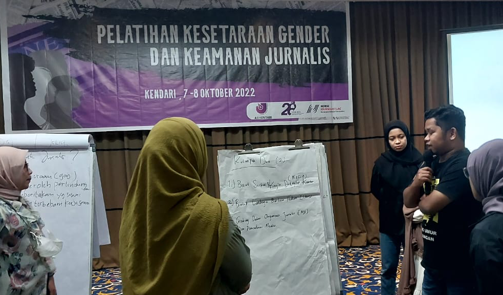 Aliansi Jurnalis Independen(AJI) Kendari mengadakan pelatihan kesetaraan gender dan keamanan jurnalis. Kegiatan tersebut, dilaksanakan selama dua hari yaitu 7-8 Oktober 2022 di Swiss-belhotel Kendari.