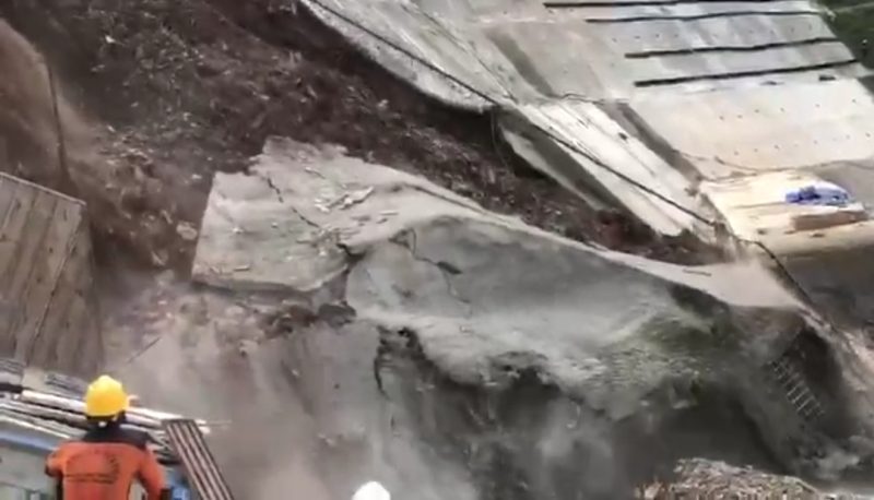 Dalam rekaman video tersebut, terlihat sebagian dinding bendungan longsor. Beberapa pekerja turut berada di lokasi.