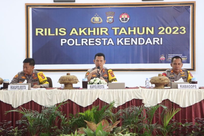 Hal tersebut diungkapkan Kapolresta Kendari AKBP Aris Tri Yunarko dalam rilis akhir tahun 2023 Polresta Kendari pada Sabtu, 30 Desember 2023.