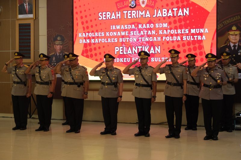 Dua PJU yang berganti tersebut yakni jabatan Irwasda dan Karo SDM. Sementara tiga kapolres yang berganti adalah Kapolres Muna, Kapolres Buton Tengah dan Kapolres Konawe Selatan.