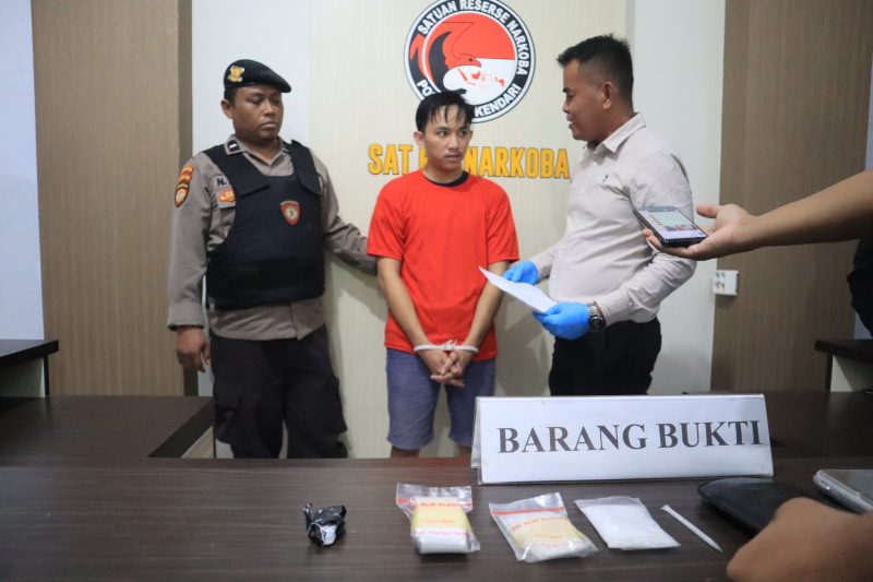 Tim Narko10 Satuan Reserse Narkoba (Satresnarkoba) Polresta Kendari meringkus seorang pria pengedar narkoba, Kamis 8 Juni 2023 sekitar pukul 22.30 WITa.