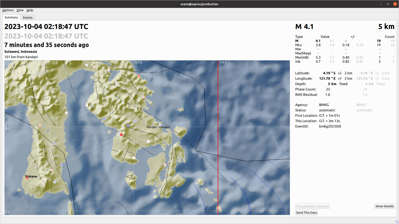 BMKG mencatat, gempa ini berpusat 4.19 LS, 121.70 BT atau 4.3 km Tenggara Baula, Kabupaten Kolaka pada kedalaman 5 kilometer.