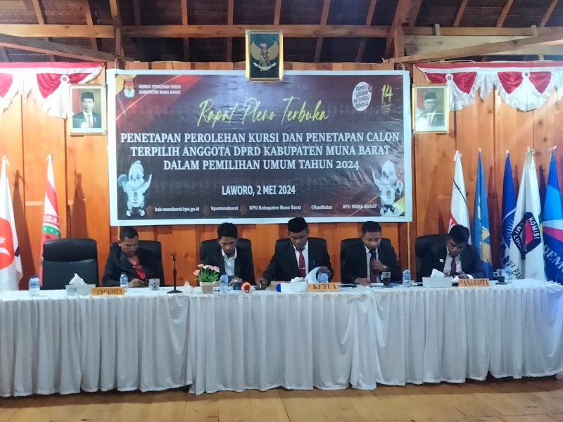 Komisi Pemilihan Umum (KPU) Kabupaten Muna Barat (Mubar) telah menetapkan perolehan kursi partai politik (parpol) peserta pemilu Anggota Dewan Perwakilan Rakyat Daerah (DPRD) Mubar dalam Pemilu tahun 2024.
