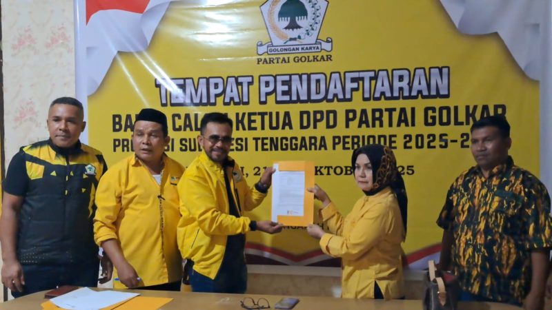 La Ode Darwin resmi mengembalikan formulir pendaftaran sebagai calon Ketua DPD I Partai Golkar Sulawesi Tenggara (Sultra) pada Jumat, 31 Oktober 2025.