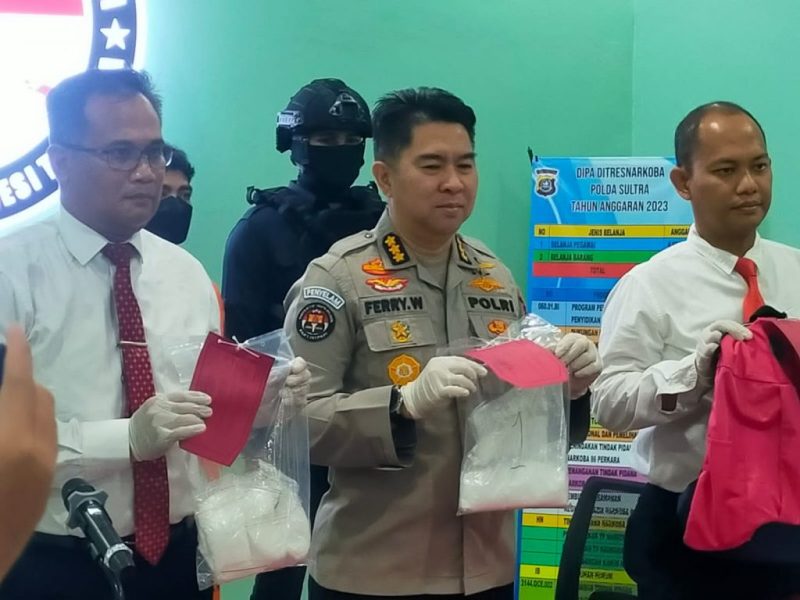 Kabid Humas Polda Sultra Kombes Pol Ferry Walintukan, S.I.K., M.H bersama Wadir Resnarkoba Polda Sultra AKBP Debby Asri Nugroho, S.H., S.I.K mengatakan, pria tersebut diringkus Subdit I Ditresnarkoba Polda Sultra di Kecamatan Kambu, Kota Kendari, Rabu 8 Maret 2023