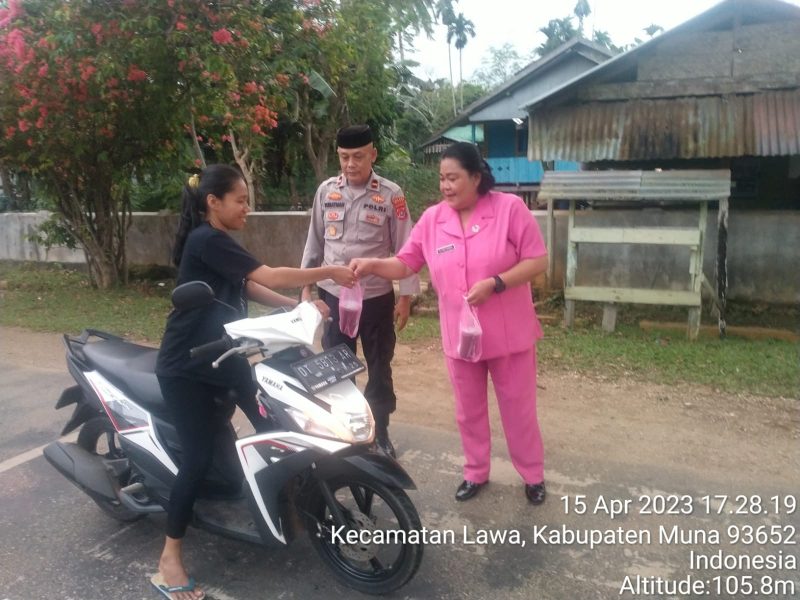 Kepolisian Sektor (Polsek) Lawa Kabupaten Muna Barat membagikan takjil kepada masyarakat. Pembagian takjil ini dilakukan saat menjelang berbuka puasa di depan kantor Polsek Lawa dengan menyasar beberapa masyarakat sekitar dan pengendara yang melintas di depan Polsek Lawa.