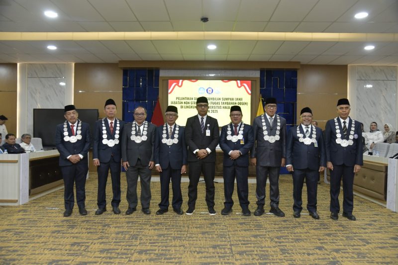 Rektor Universitas Halu Oleo (UHO), Prof. Dr. Armid, S.Si., M.Si., M.Sc., D.Sc., resmi melantik 31 pejabat non struktural (tugas tambahan dosen) di lingkungan UHO pada Senin, 11 Agustus 2025.