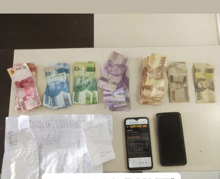 Dari hasil penangkapan, ditemukan barang bukti empat buah kertas merumus, dua unit handphone, uang tunai sebanyak Rp853.000.
