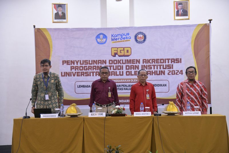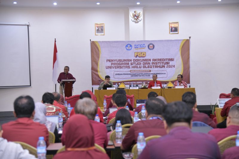 Universitas Halu Oleo (UHO) Kendari menggelar focus group discussion (FGD) penyusunan dokumen akreditasi program studi dan institusi, di salah satu hotel Kendari, Rabu, 29 Mei 2024.