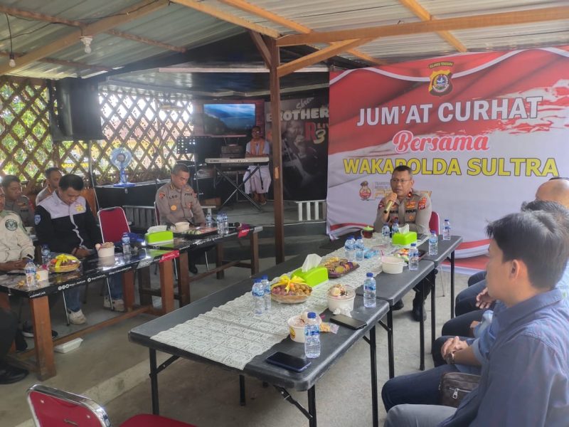 Wakil Kepala Kepolisian Daerah (Wapolda) Sulawesi Tenggara (Sultra) Brigjen Pol Waris Agono melaksanakan kegiatan Jumat curhat bersama masyarakat, di kawasan Eks MTQ kota Kendari, Jumat 20 Januari2023.